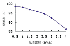 5    上樣液吸附流速對HZ816樹脂吸附性能的影響